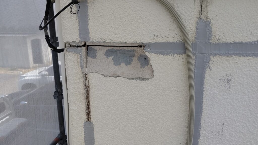 ALC外壁自体にもダメージがあり、基材破損も発生しています。