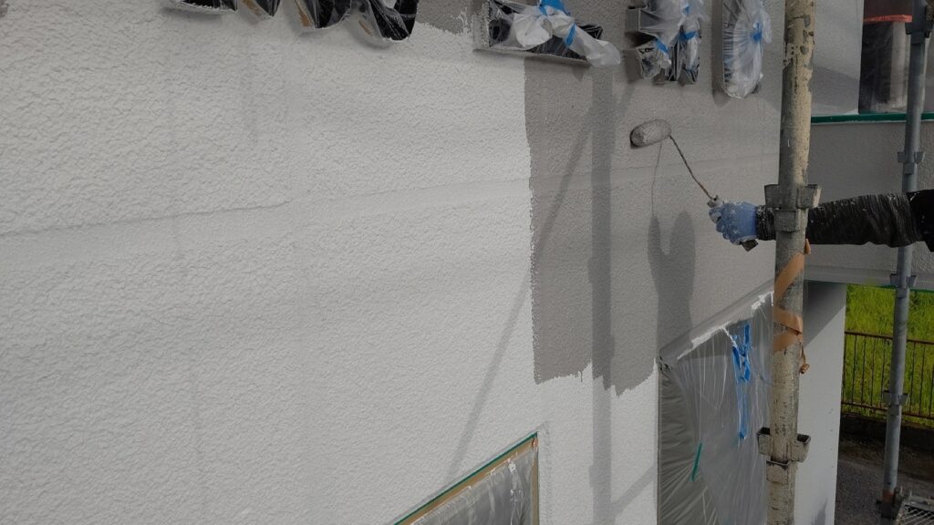 シーリング修繕・高圧洗浄が完了したら外壁の塗装に進みます。