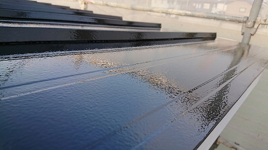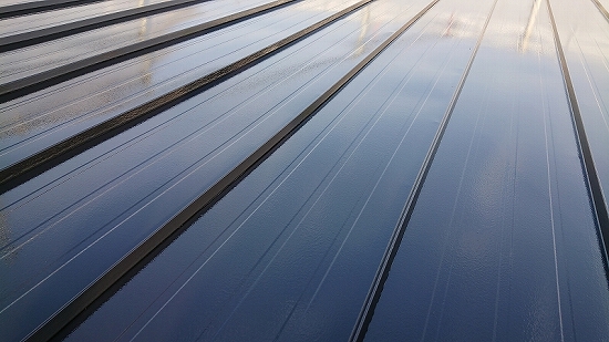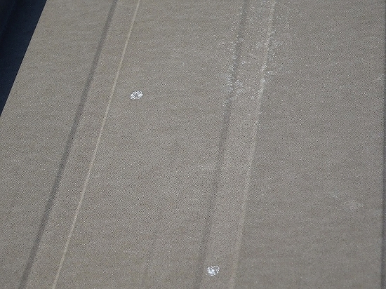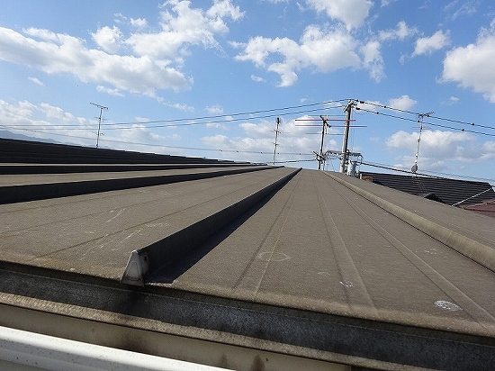 鋼板屋根のメンテナンスとしては、表面塗膜が劣化している(手で触ると触った跡が出る)場合、紫外線により塗膜機能が低下していますので、塗り替えをオススメしています。