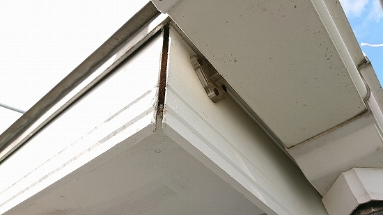 破風・鼻隠し板のシーリングの劣化が発生しています。