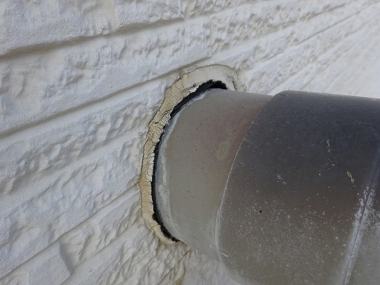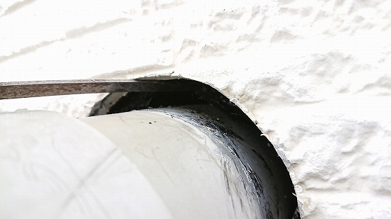 経年劣化で貫通部周りのシーリングはすでに切れてしまっていたので、台風などで漏水する可能性が高い状態でした。