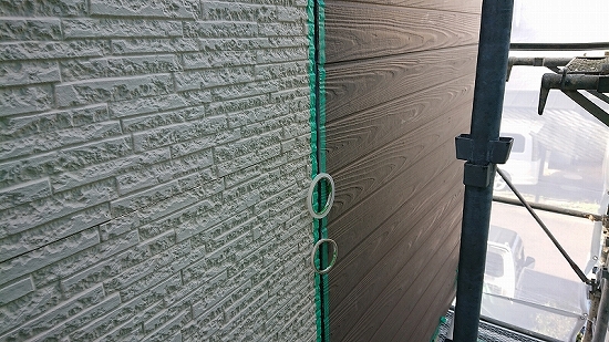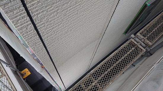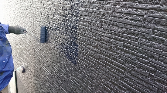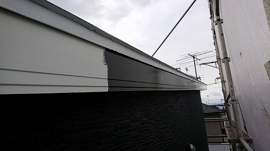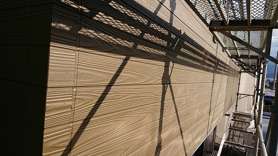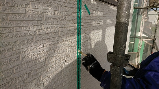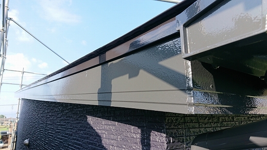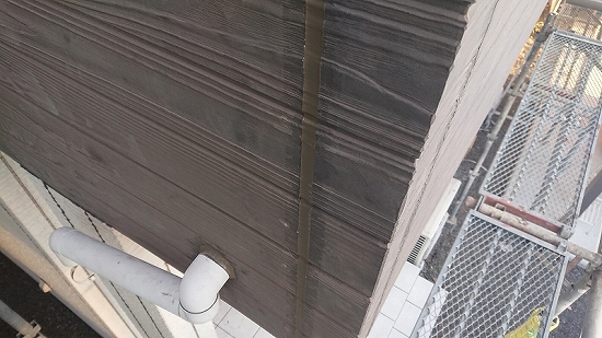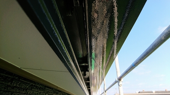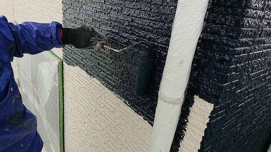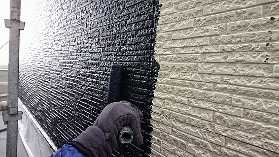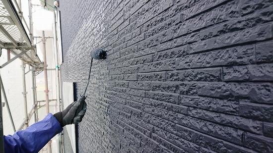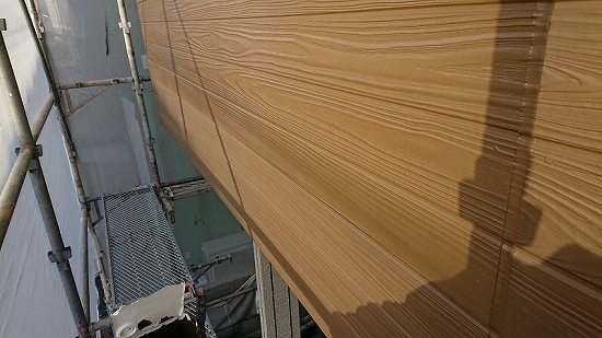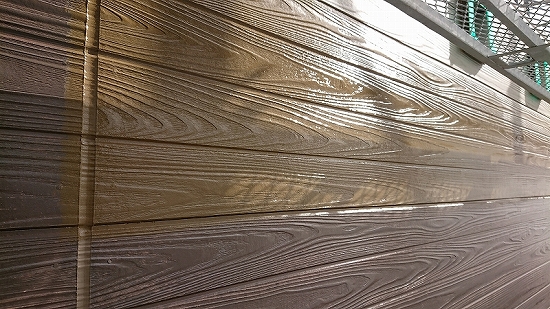 フラットなデザインの外壁材だと上塗り3回目、当店では珍しくありませんが、このデザインですのでタップリ塗布すれば問題なさそうです。