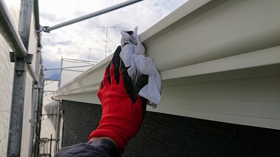 雨樋は美観上塗装する箇所となりますが、少しでも塗装が長持ちするようにしっかり作業を行います。