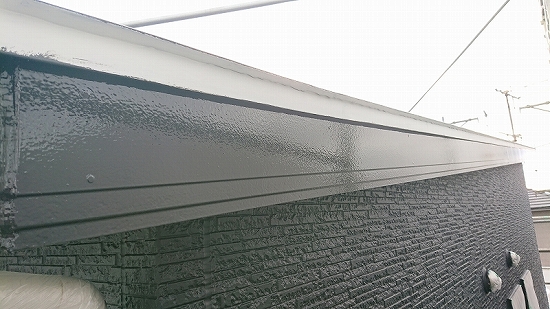 破風・鼻隠し板のシーリングは、外壁と同じオートンサイディングシーラントのブラック色で仕上げました。