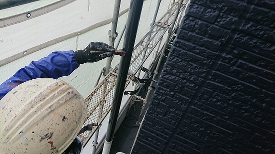 今回は外壁色が白→濃紺となりますので、それに伴いシーリングはブラック系統を選定しました。