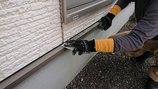 その後、断面に残ったシーリングをカッターナイフで綺麗に撤去していきます。