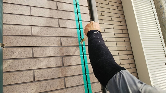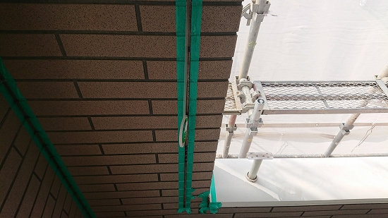 中塗り乾燥後、目地部分にテープ養生を行います。