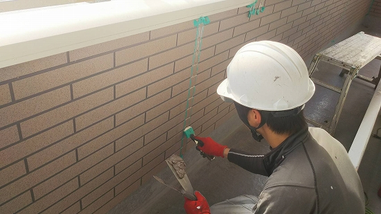 今回は塗装した目地色に合わせて色味を選定し、違和感ない色味で打ち込みを行いました。