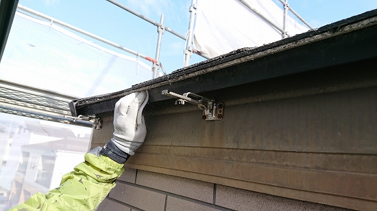 軒樋も鼻隠しシーリングの為に一旦取り外します。
