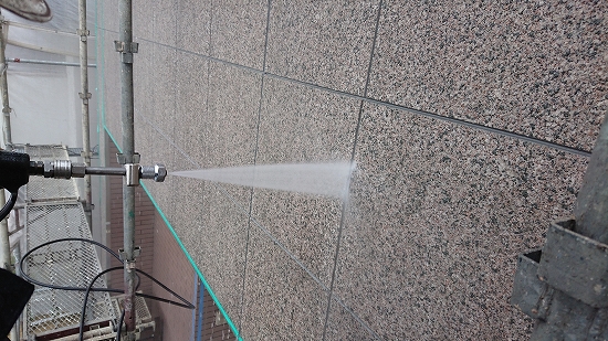 研磨時に埃が舞いますので、高圧洗浄前に行っておきます。
