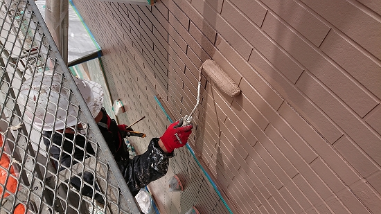 上塗り1回目同様、刷毛とローラーを用いて上塗り2回目の塗布を行います。