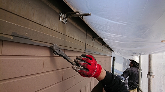 高圧洗浄で残った旧塗膜を下塗り材でガッチリ固めて、塗膜剥離のリスクを軽減させます。