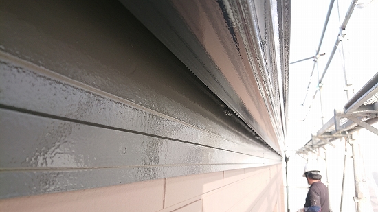 対候性を確保する為に、基本的に上塗り塗料は2度塗布して仕上げますので、乾燥後、上塗り塗料2回目の塗布を行います。