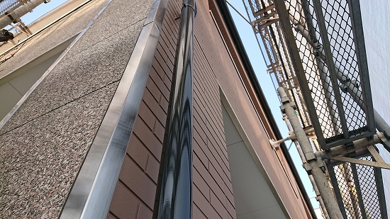 切妻屋根の場合は雨樋が取り外せる事が多いので非常に作業がしやすいです。