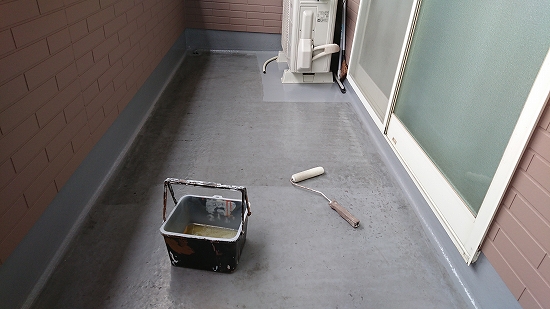 経年と共にトップコートが紫外線により劣化してしまいますので、中の防水層を守る為にトップコートの塗り替えを行います。