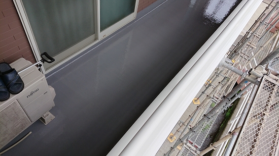 FRP防水のトップコートにはパラフィンといわれる、ロウ成分のようなものが表層に浮き出ている場合があります。